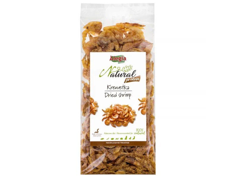 Natural Protein Krewetka Suszona to w pełni naturalny, wysokobiałkowy przysmak dla zwierząt mięsożernych i wszystkożernych. Stanowi cenne źródło łatwo przyswajalnego białka, kwasów tłuszczowych omega-3 oraz bogactwa mikro- i makroelementów wspierających prawidłowe funkcjonowanie organizmu. Produkt nie zawiera żadnych dodatków, konserwantów ani sztucznych barwników – to czysta natura w najczystszej postaci.