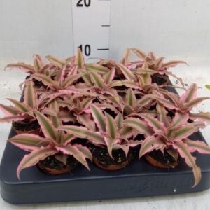 Wyjątkowo dekoracyjna odmiana kalatei, wyróżniająca się ciemnopurpurowymi, niemal czarnymi liśćmi z intensywnymi różowymi żyłkami i obrzeżeniem. Od spodu liście mają głęboki bordowy kolor, co dodaje roślinie elegancji i egzotycznego uroku. Dorasta do około 40 cm wysokości, tworząc gęste, zwarte kępy liści.