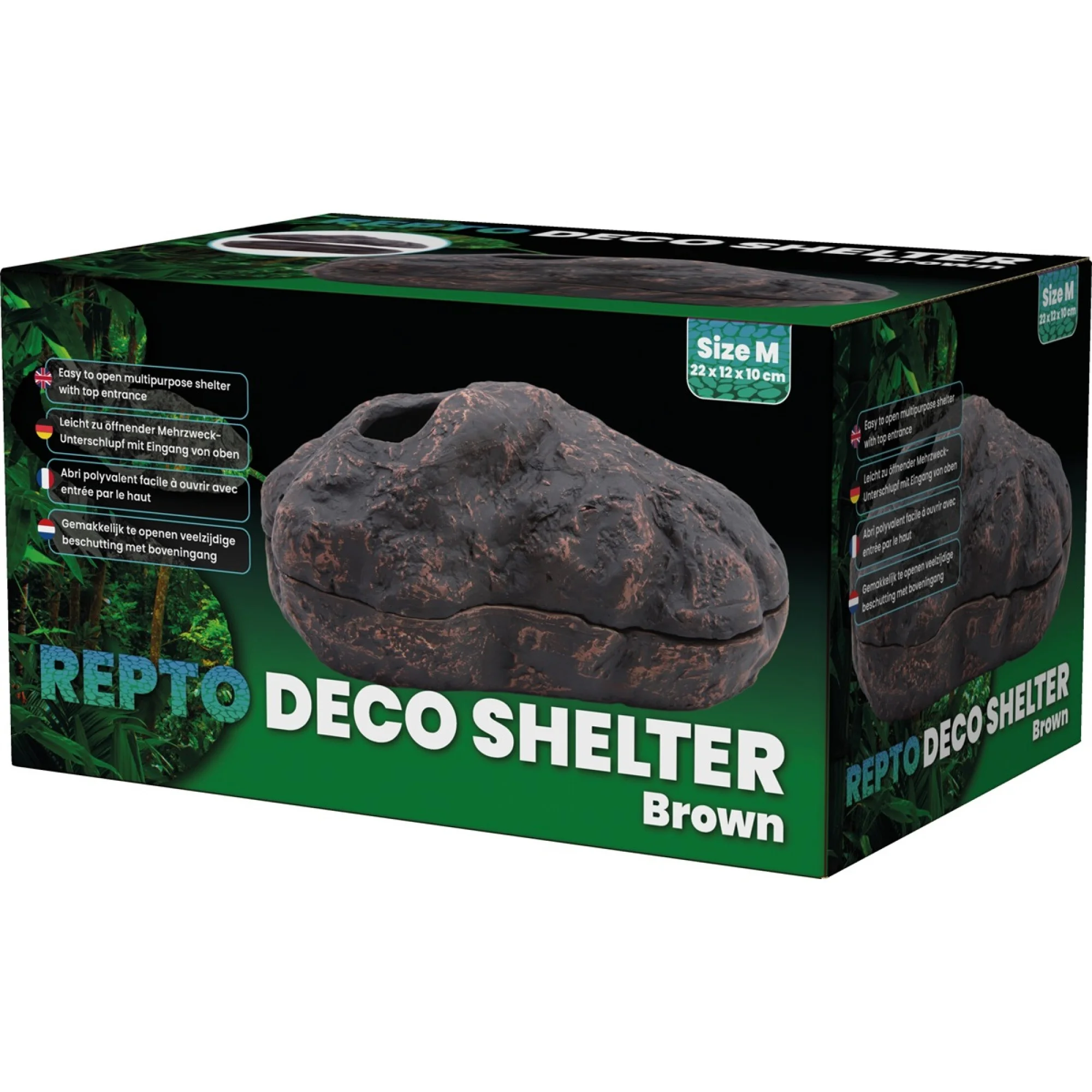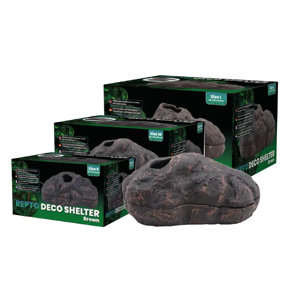 Repto Deco Shelter Brown dostępny jest w kilku wariantach rozmiarowych dopasowanych do wielkości zwierzęcia:
