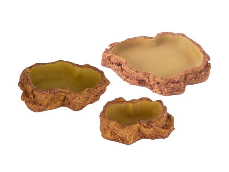 Nowa miska Reptile w żółtym, piaskowym kolorze dostępna jest w trzech rozmiarach, co pozwala dopasować ją do potrzeb różnych gatunków zwierząt. Idealnie sprawdza się w terrariach, łącząc funkcjonalność z naturalnym wyglądem.