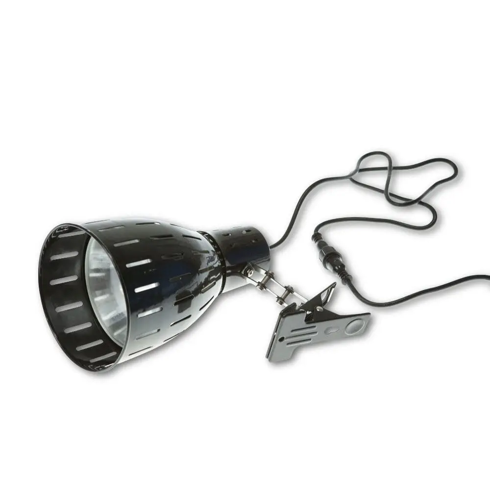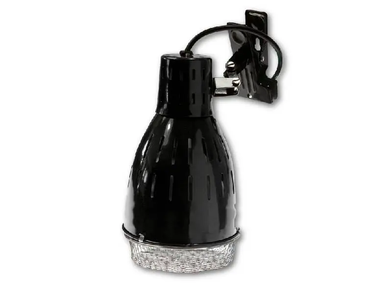 Klosz zasłania całkowicie żarówkę i wizualnie wzbogaca terrarium dzięki czarnej, smukłej konstrukcji. Wiązkę światła można skierować tam, gdzie jest potrzebna a obserwacja terrarium jest znacznie przyjemniejsza, ponieważ reflektor nie oślepia.