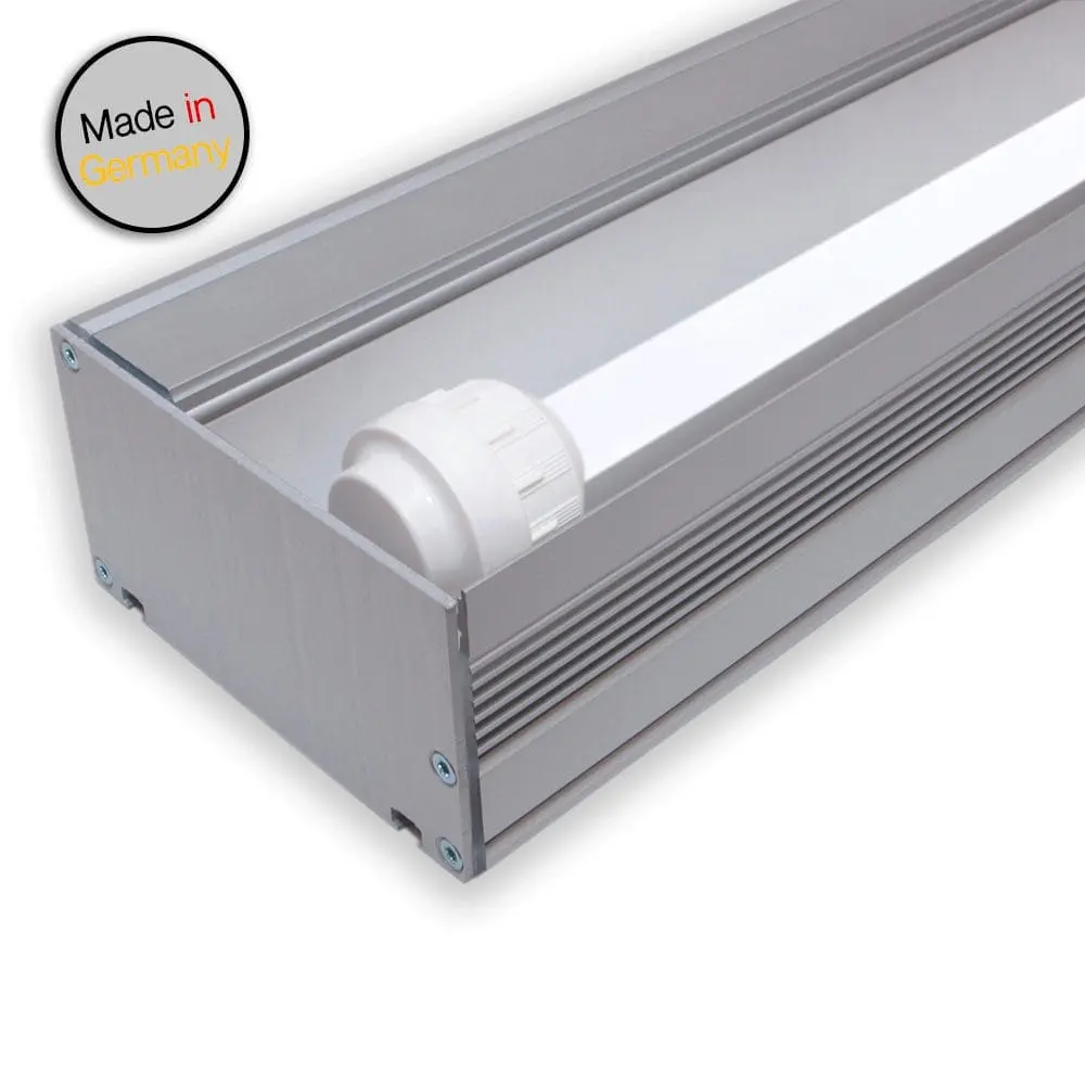 Jakość jest naszym najwyższym priorytetem, jeśli chodzi o system oświetleniowy T5: do produkcji używamy wyłącznie wysokiej jakości komponentów, a produkcja odbywa się w 100% w Niemczech. Dzięki doskonałym właściwościom użytego materiału i specjalnej konstrukcji uzyskano równomierny i doskonały rozsył światła.
