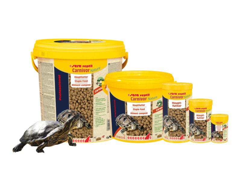 Sera Reptil Professional Carnivor Nature to pokarm podstawowy bez barwników i konserwantów składający się z pływającego, dwukolorowego granulatu wytwarzanego w wysoce funkcjonalnym procesie koekstruzji, dla wszystkich gadów mięsożernych takich jak żółwie wodne.