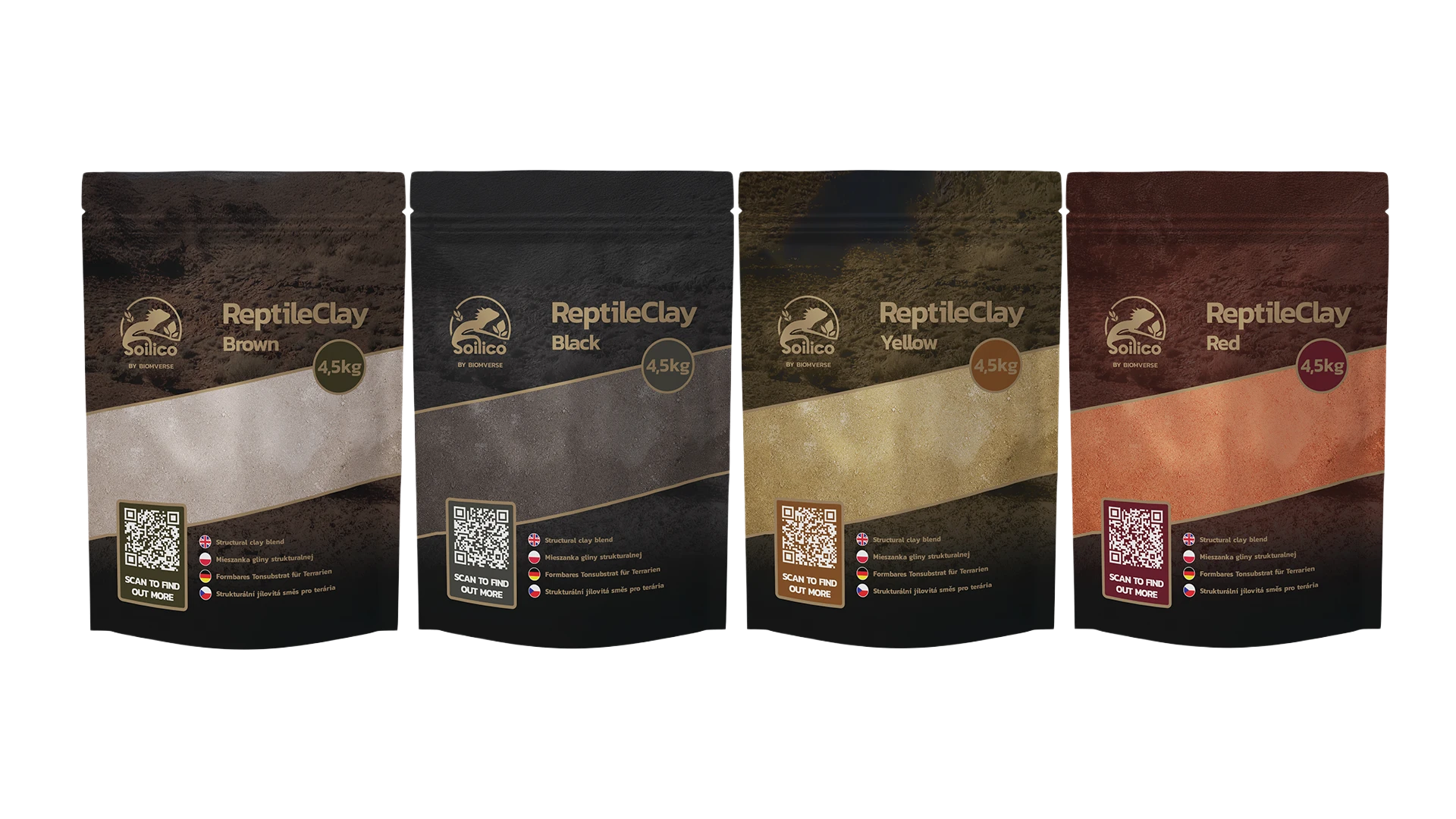 ReptileClay glina strukturalna w różnych kolorach: czarny, żółty, czarny, brązowy