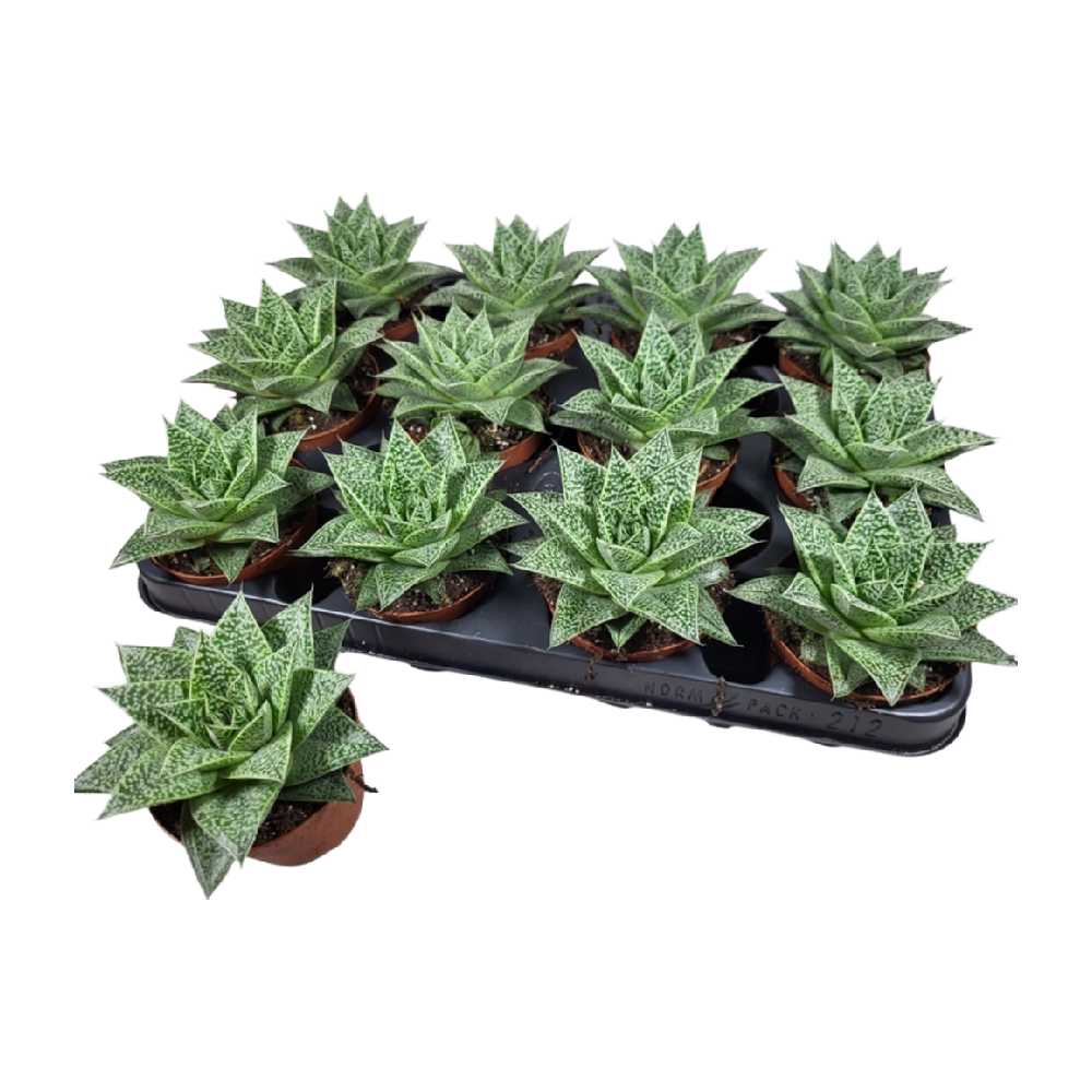 Gasteraloe ‘Aveo’ to efektowny sukulent będący krzyżówką Gasterii i Aloe, łączący w sobie najlepsze cechy obu roślin. Charakteryzuje się zwartym pokrojem oraz grubymi, mięsistymi liśćmi pokrytymi dekoracyjnym, jasnym wzorem. To idealna propozycja dla osób szukających rośliny łatwej w uprawie, a jednocześnie wyróżniającej się wyglądem.