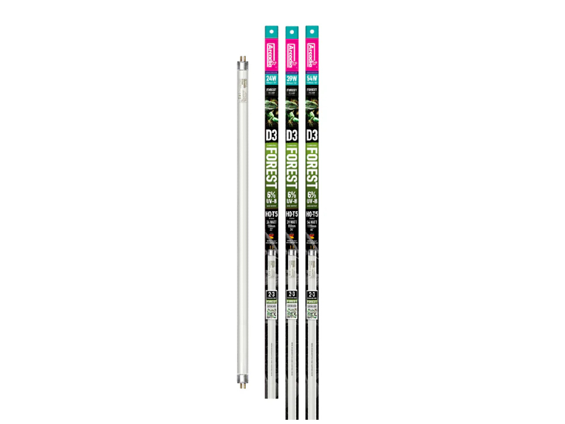 Arcadia D3 Forest T5 Lamp 6 % UVB 39 W (86,5 cm) to wysokiej jakości liniowa świetlówka UVB przeznaczona do terrariów zamieszkiwanych przez gady i płazy o umiarkowanych wymaganiach świetlnych. Została zaprojektowana z myślą o zapewnieniu stabilnej, bezpiecznej i równomiernej ekspozycji promieniowania UVB, które jest niezbędne dla prawidłowego funkcjonowania organizmu i naturalnych procesów metabolicznych zwierząt terraryjnych.
