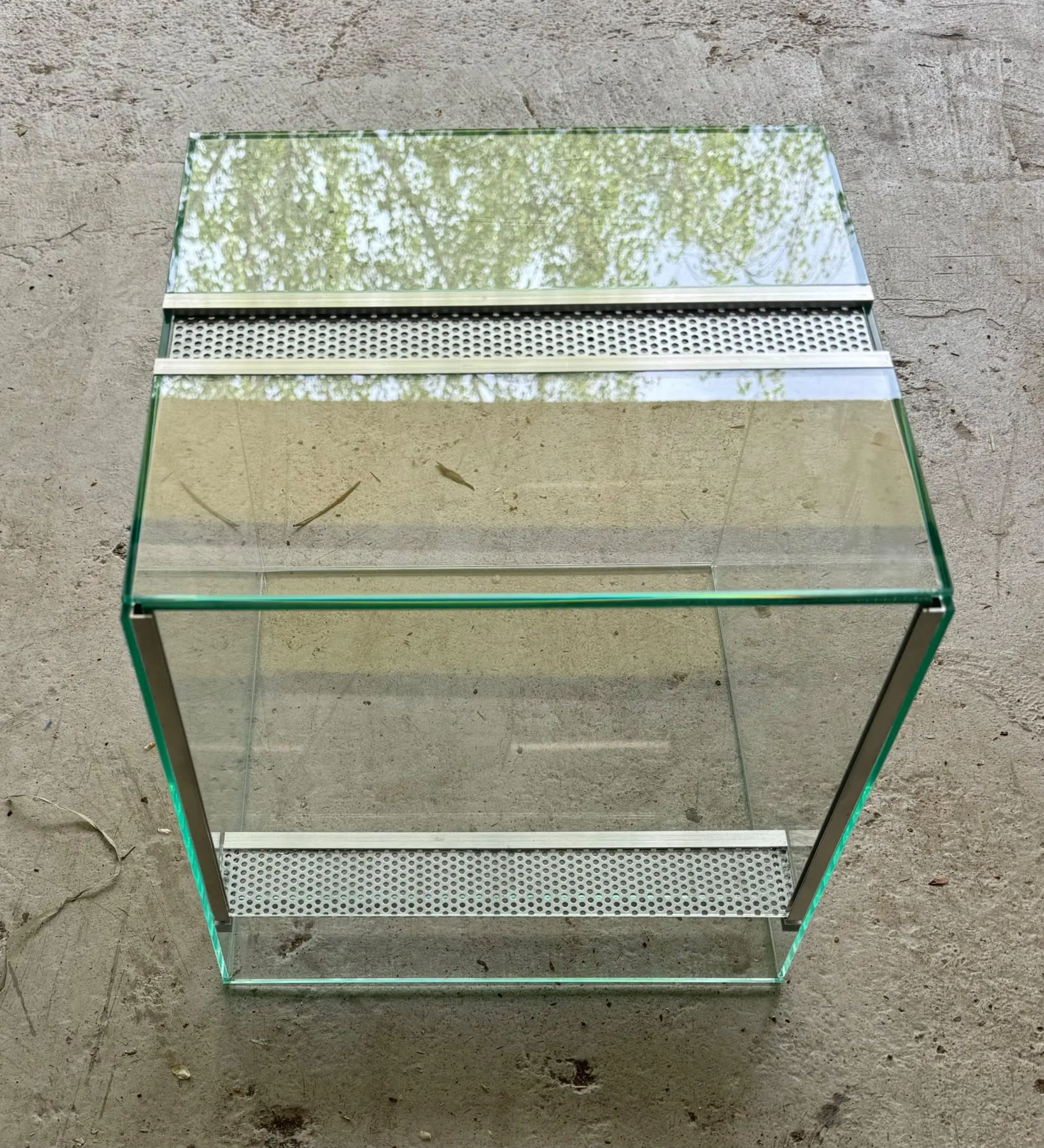 Małe terrarium dla młodych pająków, patyczaków, owadów i innych małych zwierząt. Jest to estetycznie wykonany, szklany zbiornik z wmontowaną wentylacją oraz wygodnym dostępem do wnętrza poprzez tzw. gilotynę.