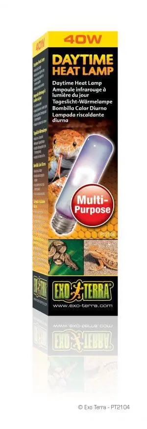Żarówka grzewcza Daytime Heat to lampa światła dziennego o szerokim spektrum z neodymową powłoką. Spektrum jest idealne do fotosyntezy roślin, a światło lampy UVA przyczynia się do fizjologicznego dobrostanu gadów. Innym ważnym czynnikiem jest to, że ciepło emitowane przez tę żarówkę podnosi ogólną temperaturę otoczenia w terrarium.