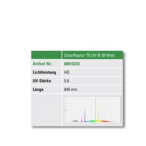 Skuteczne użytkowanie świetlówki dzięki jej mocnemu spektrum UVB nawet w wysokich terrariach, optymalna intensywność promieniowania zmniejsza się wraz z czasem użytkowania- zalecamy wymianę świetlówki co najmniej co 12 miesięcy.
