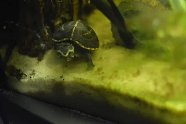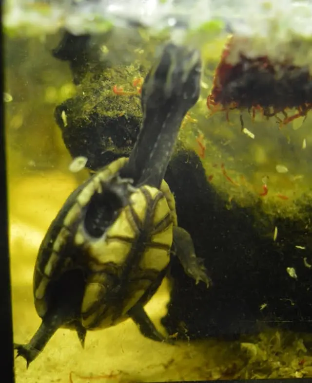 Młody żółw mułowy Kinosternin baurii. Młody osobnik jest bardzo odporny i łatwy w utrzymaniu. Jest polecany dla początkujących hodowców. Je wszystkie popularne rodzaje paszy, mięso, dżdżownice i ślimaki. Jest bardzo aktywny i zainteresowany otoczeniem. Więcej na temat tego gatunku przeczytasz tutaj