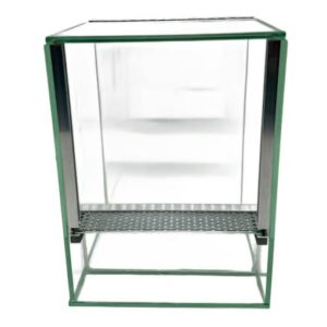Szklane terrarium to idealne środowisko dla modliszek, pająków czy patyczaków, zapewniające im bezpieczne i stabilne warunki życia. Dzięki odpowiedniej wentylacji i praktycznej szybie typu gilotyna gwarantuje łatwy dostęp oraz optymalną cyrkulację powietrza. Solidna konstrukcja i elegancki wygląd sprawiają, że terrarium doskonale nadaje się zarówno do hodowli, jak i efektownej ekspozycji.